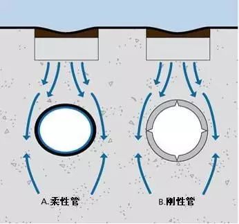 塑料管屬于柔性管,在受外壓負(fù)荷時(shí),柔性管和剛性管的承受負(fù)載的機(jī)理是全部不同的。柔性管在受壓破壞之前,可以有較大的變形,而剛性管在受外壓破壞之前不可能有較大變形。當(dāng)剛性管受外壓時(shí),負(fù)載全部經(jīng)過(guò)管材壁傳遞到底部的管床上,在管材壁內(nèi)產(chǎn)生彎矩,隨著管材直徑加大,管壁的彎矩和應(yīng)力急劇加大,所以大直徑的混凝土排水管常常需加鋼筋,而柔性管在受壓破壞前先變形----橫向外擴(kuò),管材周圍的回填土壤可以起到阻止柔性管變形和外擴(kuò)的作用,外壓負(fù)載就被傳遞和分?jǐn)偟街車幕靥钔林腥チ?。所以,在同樣外壓?fù)載下柔性管管壁內(nèi)的應(yīng)力較小,它和周圍的回填土共同承受負(fù)載,管土共同作用。因此,塑料埋地排水管不需和剛性混凝土管一樣的強(qiáng)度和剛度,在合理的剛度下,是全部可以達(dá)到使用要求的,這一點(diǎn)已被歐洲發(fā)達(dá)的應(yīng)用實(shí)踐所證明。